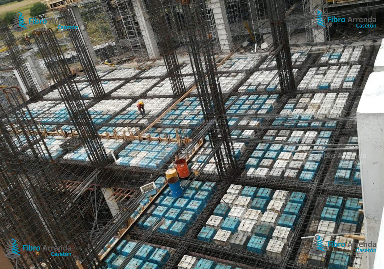 El casetón de fibra de vidrio es una cimbra en forma de caja de resina de poliéster, la cual se refuerza con fibra de vidrio y madera.