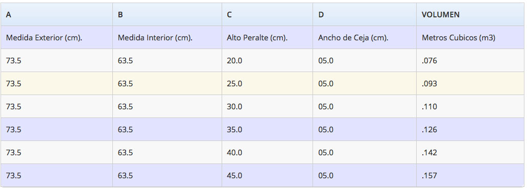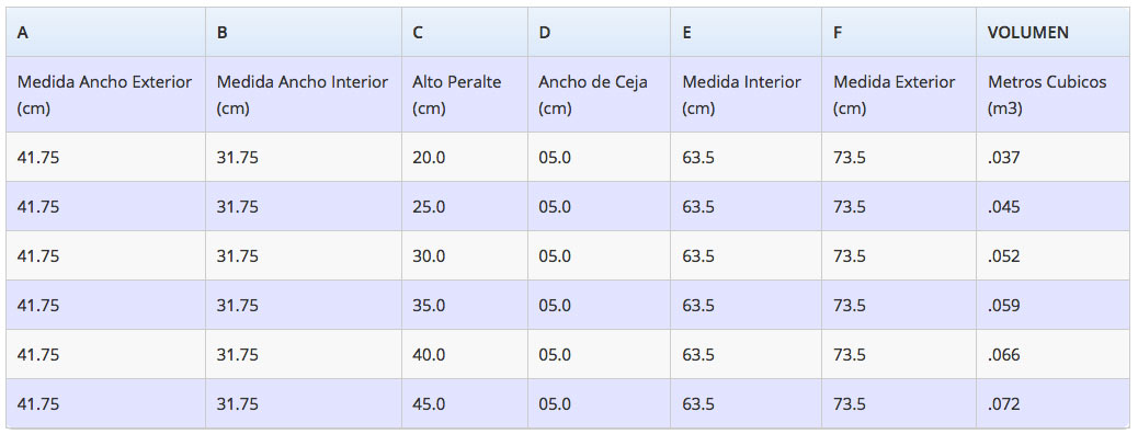 Contamos con las siguientes medidas comerciales, ademas de medidas especiales que pueden adecuarse a su proyecto
